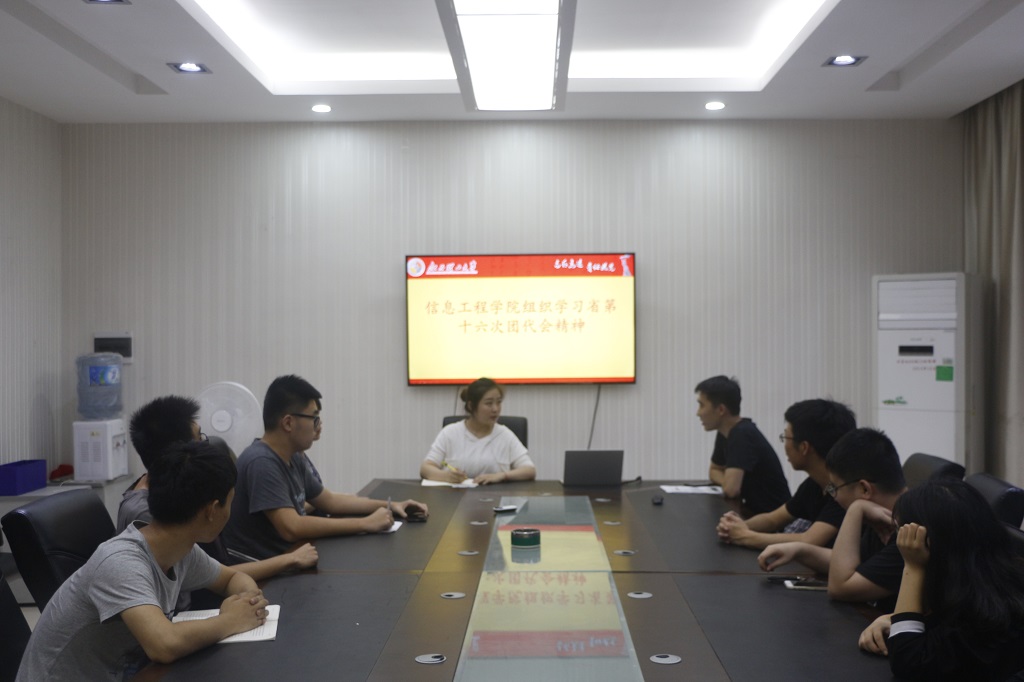 本网讯(安旭)为深入学习贯彻传达省第十六次团代会会议精神,信息工程学院于6月13日在信息学院楼s206召开了学习省第十六次团代会精神会议。辅导员胡雅静及团委学生会主要学生干部参加了会议,会议由胡雅静主持。