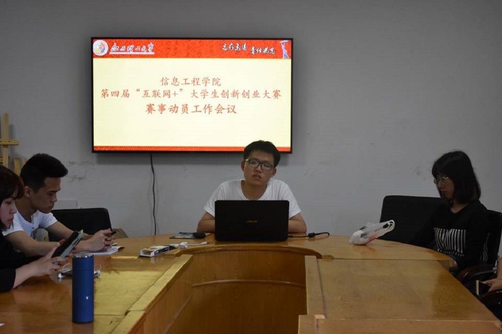 本网讯(何晴)为更好地迎接第四届中国“互联网+”大学生创新创业大赛的举办,促进大赛宣传工作,强化赛事氛围,加强同学们对大赛规定的了解,让同学们做好充足的赛前准备,5月5日下午,信息学院在学院楼s210举办了“互联网+”创新创业大赛赛事动员工作会议。本次大会的主讲人为网络161张同鑫,15级和16级各班级代表参加了此次大会。