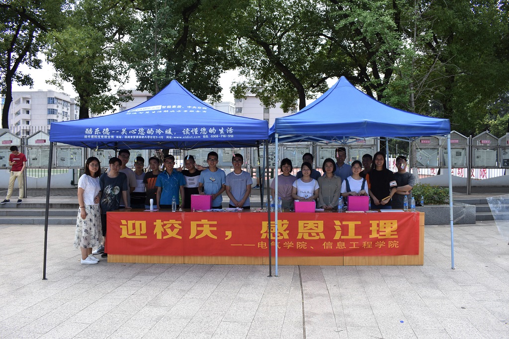 六十年栉风沐雨、六十载弦歌不辍,为调动广大师生参与校庆活动的积极性,让同学们更加深入了解我校,向我校即将到来的六十周年校庆进行祝福,5月26日上午,信息工程学院联合电气工程与自动化学院,文法学院,机电工程学院在校文化广场开展了“迎校庆,感恩江理”活动。