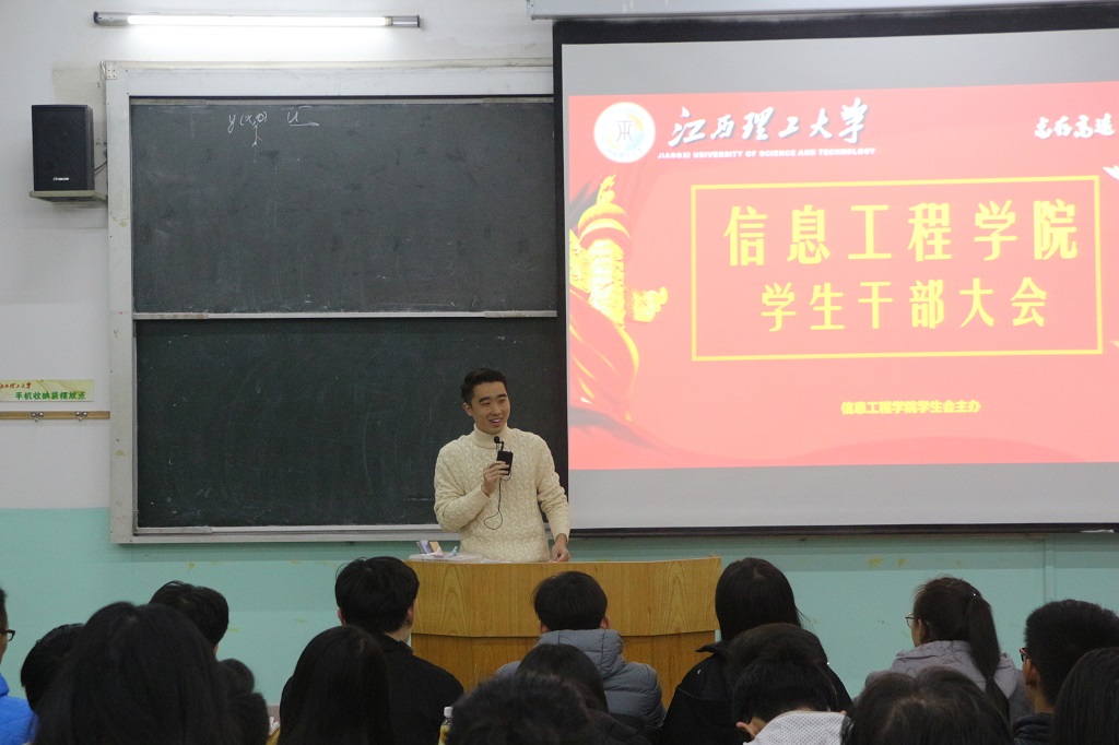 本网讯(白静洁)为了更好的促进学生干部之间的交流,11月25日下午,信息学院在主教楼E01召开学生干部培训大会。信息学院学生会主席王冠超、信息工程学院学生会全体成员参加了此次会议。会议由王冠超主持。